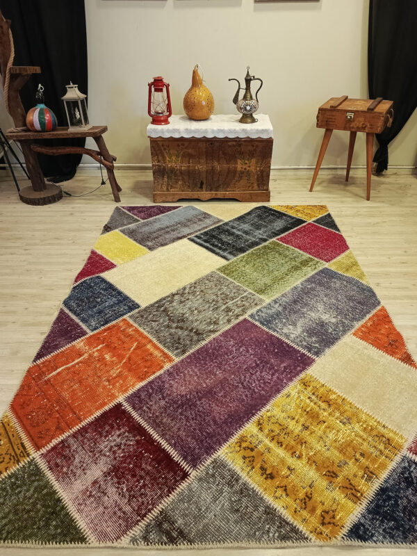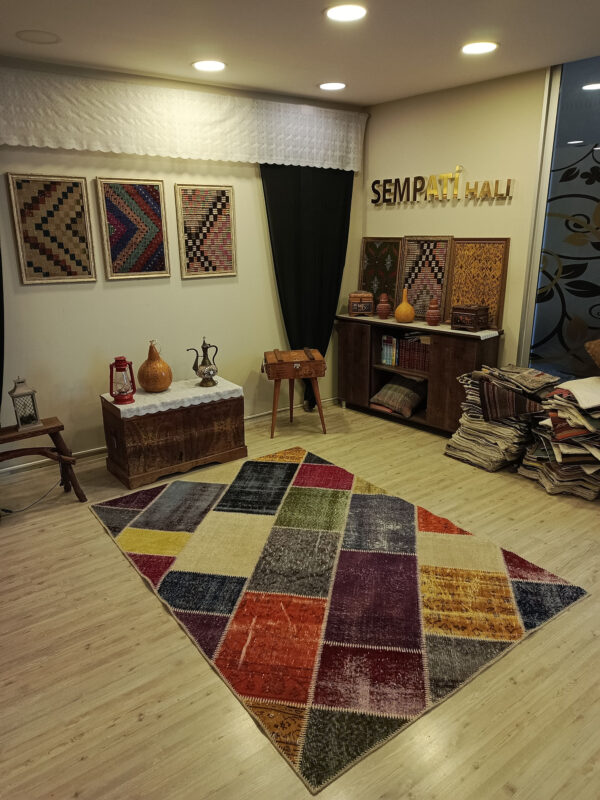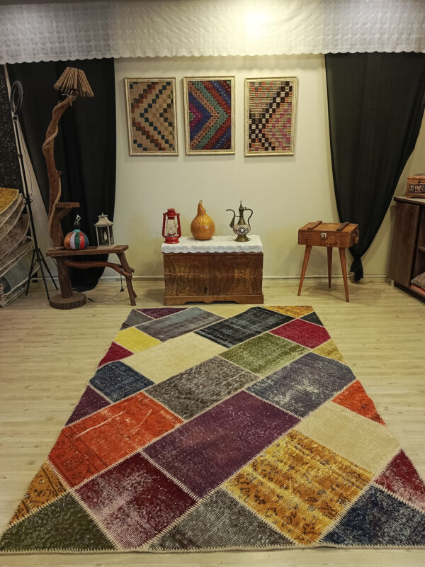 Bu titiz ve çok aşamalı süreç sayesinde, her patchwork halı tek ve tekrarı olmayan bir ürün olarak ortaya çıkar; hem geçmişi yansıtır hem de modern yaşam alanlarına benzersiz bir estetik katar.