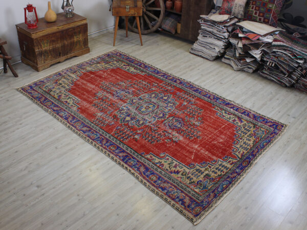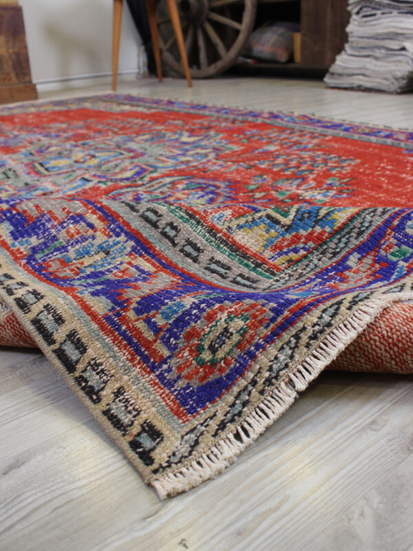 Anadolu’nun yüzyıllık el sanatları geleneğini yansıtan bu özel halı, 1980 öncesi tamamen el dokuması olarak hazırlanmıştır. Doğal yün ve pamuk ipliklerinden dokunan halı, geleneksel tekniklerle işlenmiş, traşlanıp temizlenerek modern vintage tarzına uygun hale getirilmiştir.