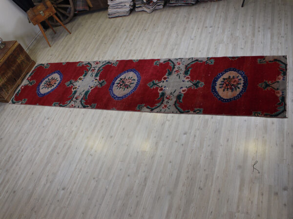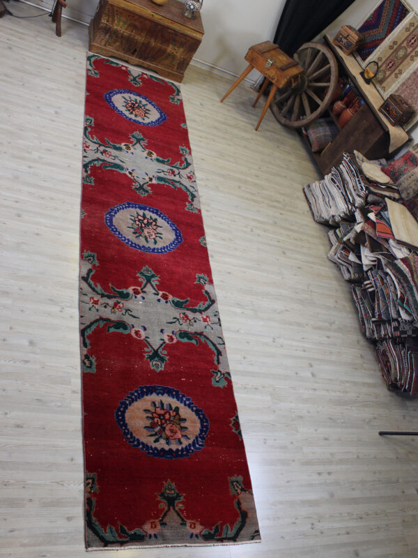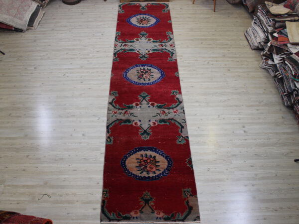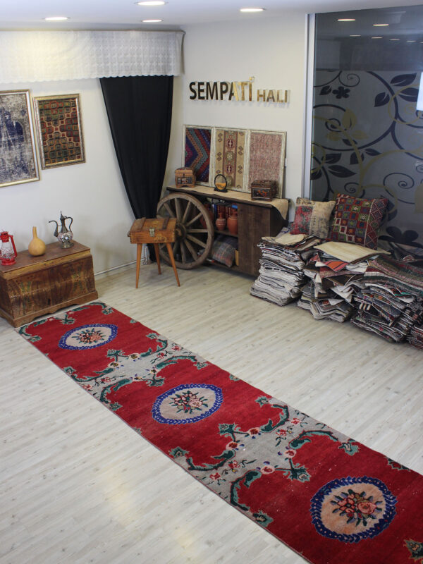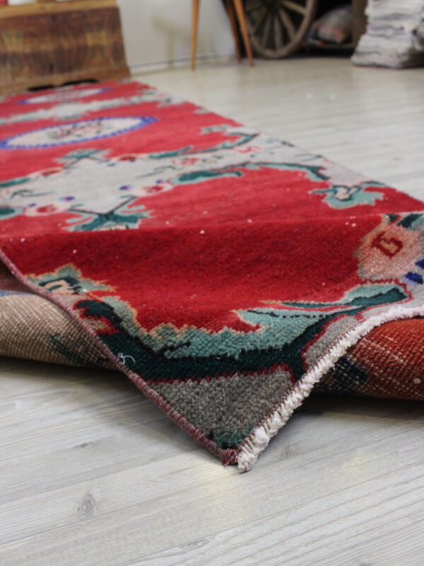 Anadolu’nun yüzyıllık el sanatları geleneğini yansıtan bu özel halı, 1980 öncesi tamamen el dokuması olarak hazırlanmıştır. Doğal yün ve pamuk ipliklerinden dokunan halı, geleneksel tekniklerle işlenmiş, traşlanıp temizlenerek modern vintage tarzına uygun hale getirilmiştir.