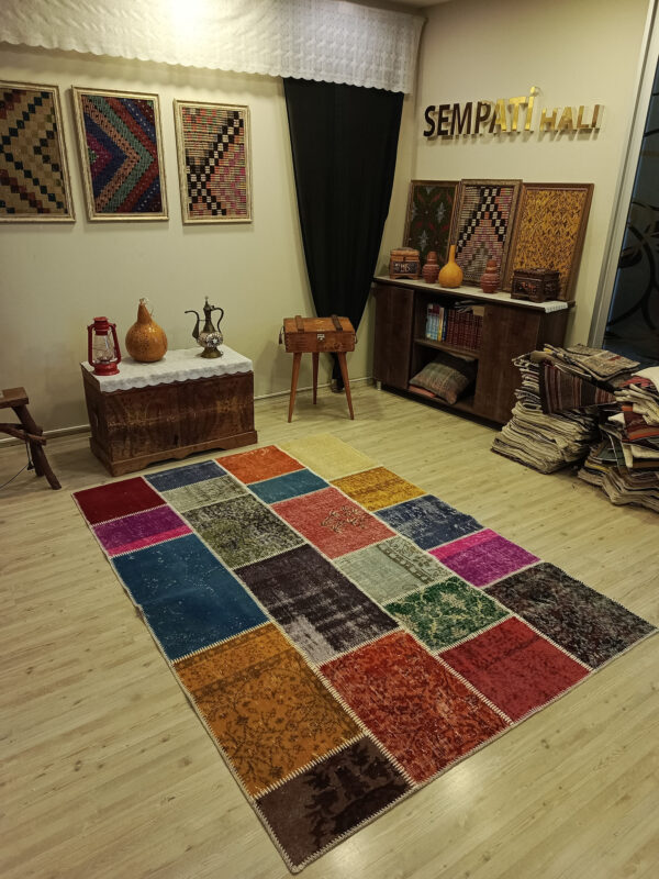 El Yapımı  Patchwork Halı   160x230 cm  6392El Yapımı Patchwork Halı 160×230 cm 6392
