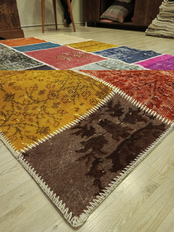 Bu titiz ve çok aşamalı süreç sayesinde, her patchwork halı tek ve tekrarı olmayan bir ürün olarak ortaya çıkar; hem geçmişi yansıtır hem de modern yaşam alanlarına benzersiz bir estetik katar.