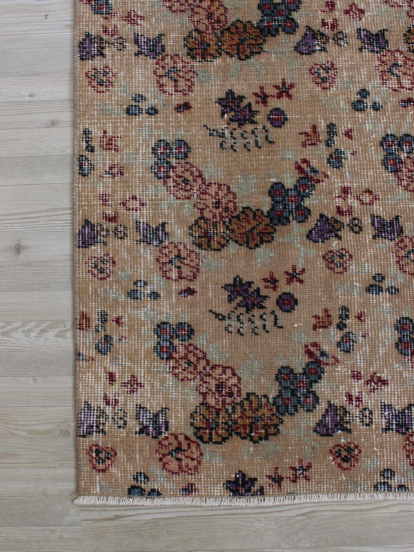 Anadolu’nun yüzyıllık el sanatları geleneğini yansıtan bu özel halı, 1980 öncesi tamamen el dokuması olarak hazırlanmıştır. Doğal yün ve pamuk ipliklerinden dokunan halı, geleneksel tekniklerle işlenmiş, traşlanıp temizlenerek modern vintage tarzına uygun hale getirilmiştir.