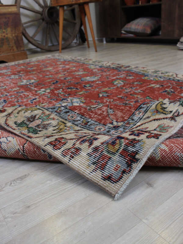 Anadolu’nun yüzyıllık el sanatları geleneğini yansıtan bu özel halı, 1980 öncesi tamamen el dokuması olarak hazırlanmıştır. Doğal yün ve pamuk ipliklerinden dokunan halı, geleneksel tekniklerle işlenmiş, traşlanıp temizlenerek modern vintage tarzına uygun hale getirilmiştir.