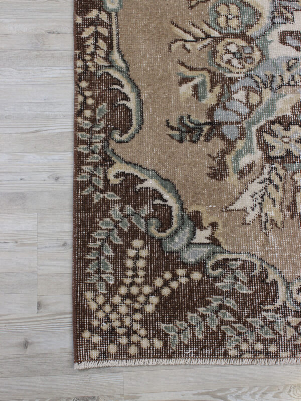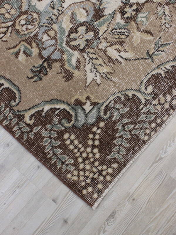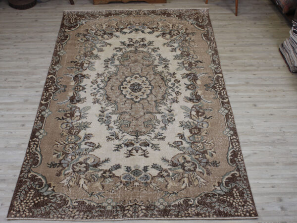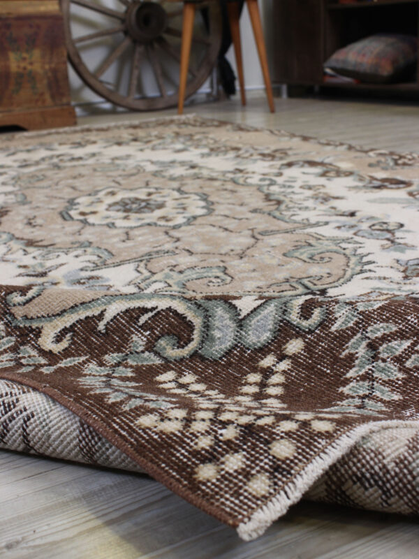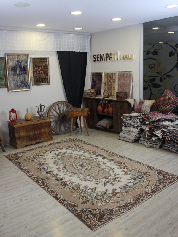 Anadolu’nun yüzyıllık el sanatları geleneğini yansıtan bu özel halı, 1980 öncesi tamamen el dokuması olarak hazırlanmıştır. Doğal yün ve pamuk ipliklerinden dokunan halı, geleneksel tekniklerle işlenmiş, traşlanıp temizlenerek modern vintage tarzına uygun hale getirilmiştir.