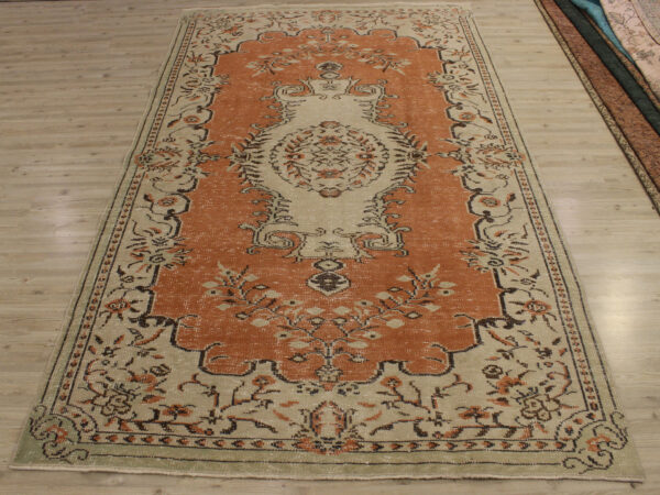 Anadolu’nun yüzyıllık el sanatları geleneğini yansıtan bu özel halı, 1980 öncesi tamamen el dokuması olarak hazırlanmıştır. Doğal yün ve pamuk ipliklerinden dokunan halı, geleneksel tekniklerle işlenmiş, traşlanıp temizlenerek modern vintage tarzına uygun hale getirilmiştir.