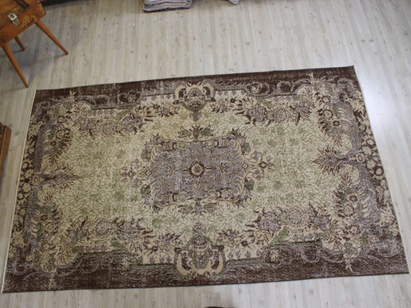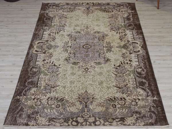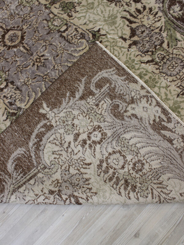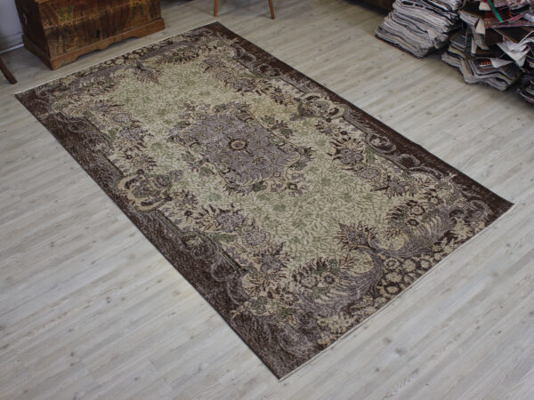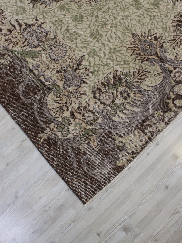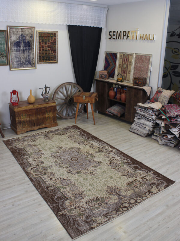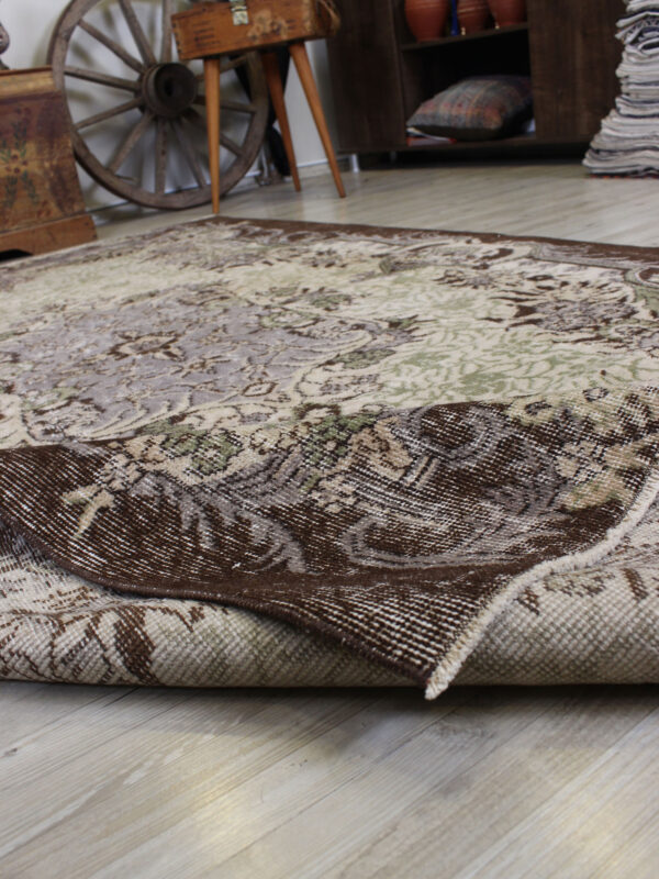 Anadolu’nun yüzyıllık el sanatları geleneğini yansıtan bu özel halı, 1980 öncesi tamamen el dokuması olarak hazırlanmıştır. Doğal yün ve pamuk ipliklerinden dokunan halı, geleneksel tekniklerle işlenmiş, traşlanıp temizlenerek modern vintage tarzına uygun hale getirilmiştir.