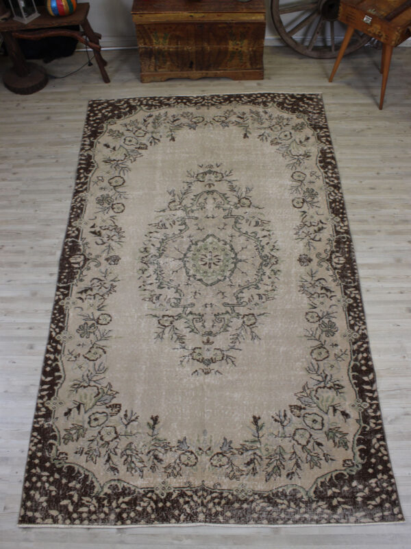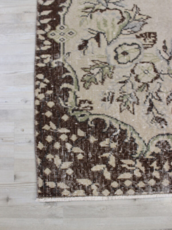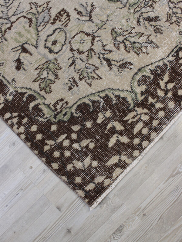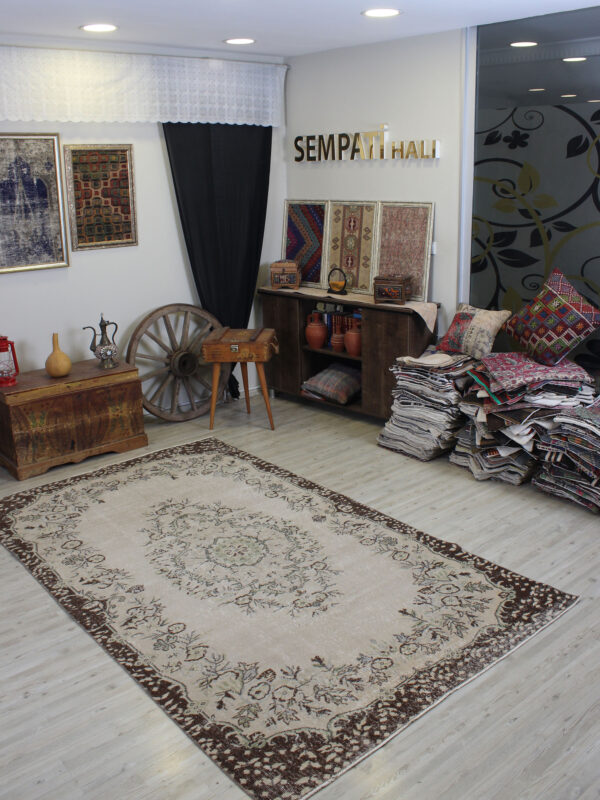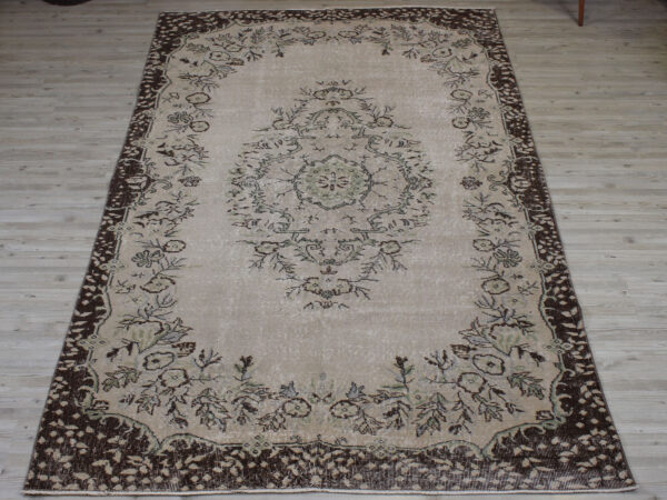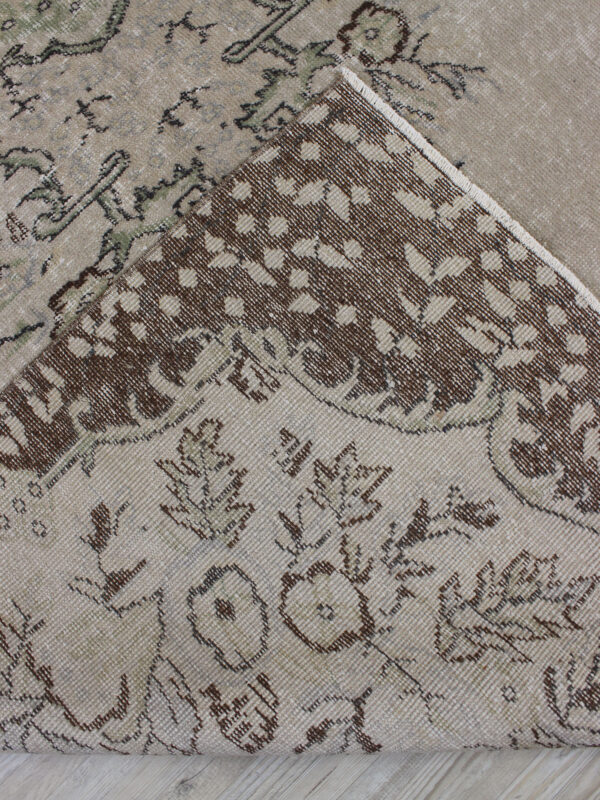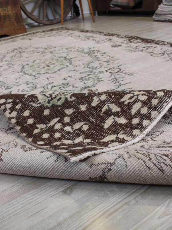 Anadolu’nun yüzyıllık el sanatları geleneğini yansıtan bu özel halı, 1980 öncesi tamamen el dokuması olarak hazırlanmıştır. Doğal yün ve pamuk ipliklerinden dokunan halı, geleneksel tekniklerle işlenmiş, traşlanıp temizlenerek modern vintage tarzına uygun hale getirilmiştir.