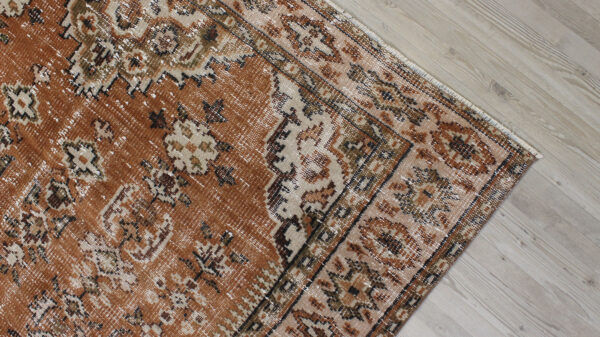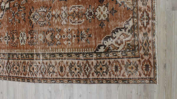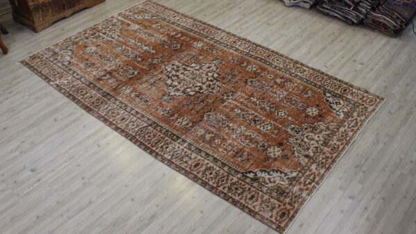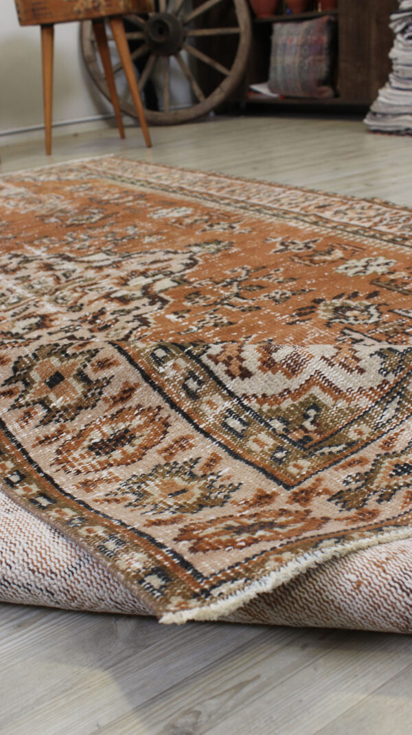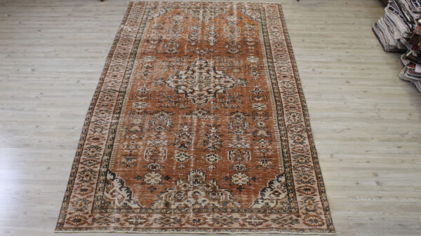 Anadolu’nun yüzyıllık el sanatları geleneğini yansıtan bu özel halı, 1980 öncesi tamamen el dokuması olarak hazırlanmıştır. Doğal yün ve pamuk ipliklerinden dokunan halı, geleneksel tekniklerle işlenmiş, traşlanıp temizlenerek modern vintage tarzına uygun hale getirilmiştir.