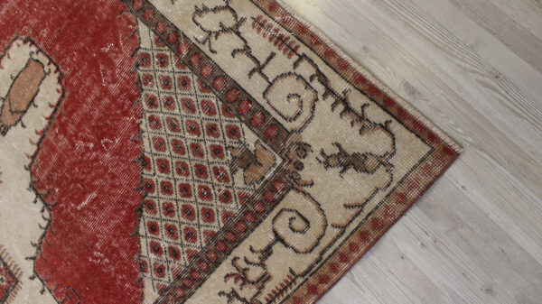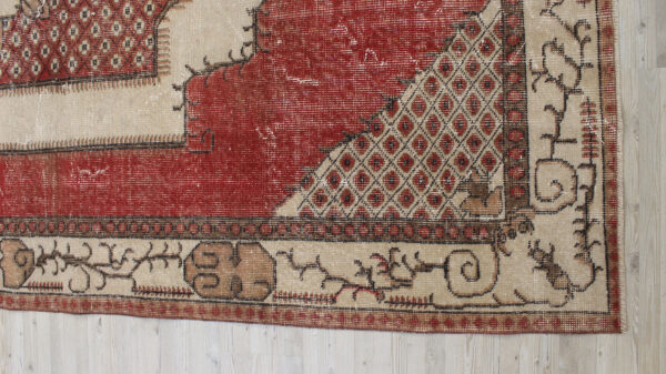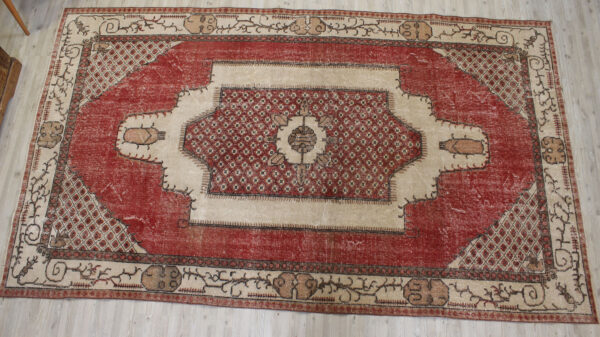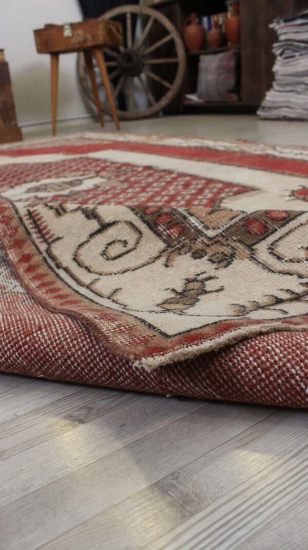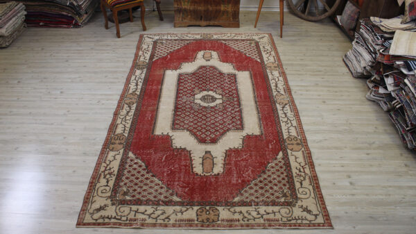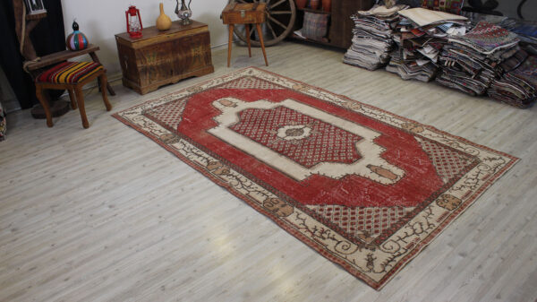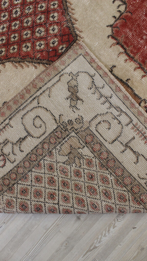 Anadolu’nun yüzyıllık el sanatları geleneğini yansıtan bu özel halı, 1980 öncesi tamamen el dokuması olarak hazırlanmıştır. Doğal yün ve pamuk ipliklerinden dokunan halı, geleneksel tekniklerle işlenmiş, traşlanıp temizlenerek modern vintage tarzına uygun hale getirilmiştir.