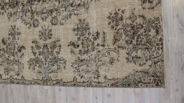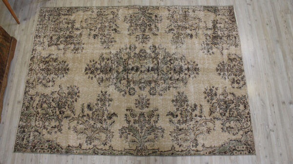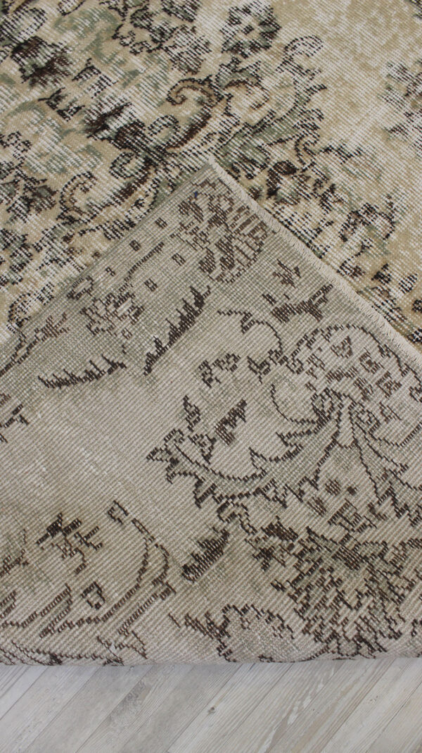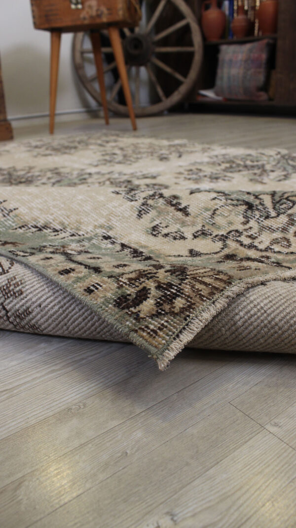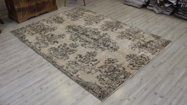 Anadolu’nun yüzyıllık el sanatları geleneğini yansıtan bu özel halı, 1980 öncesi tamamen el dokuması olarak hazırlanmıştır. Doğal yün ve pamuk ipliklerinden dokunan halı, geleneksel tekniklerle işlenmiş, traşlanıp temizlenerek modern vintage tarzına uygun hale getirilmiştir.