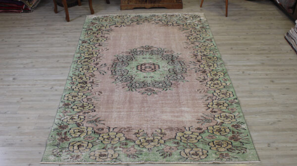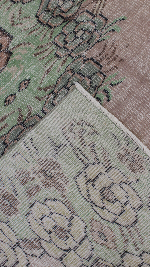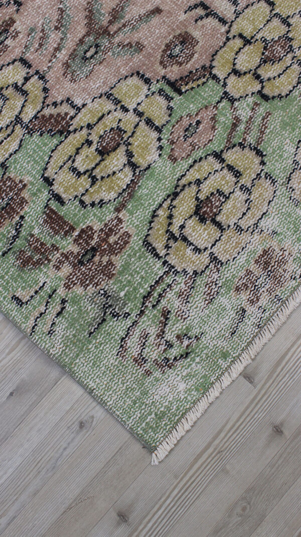 Anadolu’nun yüzyıllık el sanatları geleneğini yansıtan bu özel halı, 1980 öncesi tamamen el dokuması olarak hazırlanmıştır. Doğal yün ve pamuk ipliklerinden dokunan halı, geleneksel tekniklerle işlenmiş, traşlanıp temizlenerek modern vintage tarzına uygun hale getirilmiştir.