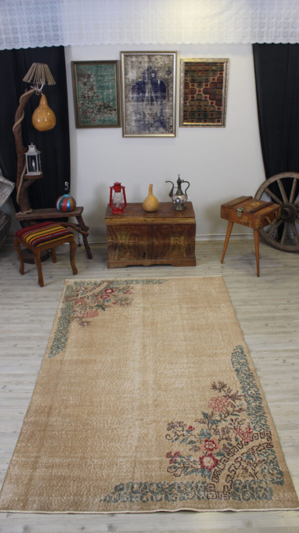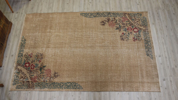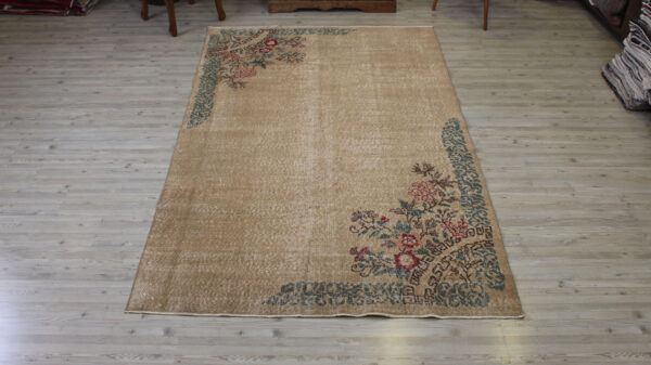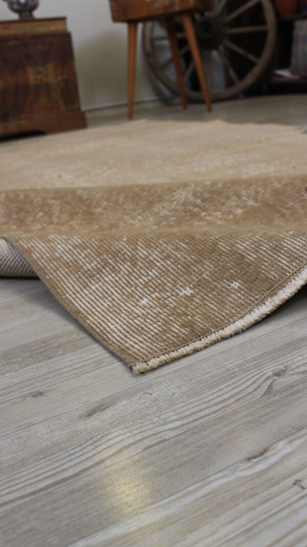 Anadolu’nun yüzyıllık el sanatları geleneğini yansıtan bu özel halı, 1980 öncesi tamamen el dokuması olarak hazırlanmıştır. Doğal yün ve pamuk ipliklerinden dokunan halı, geleneksel tekniklerle işlenmiş, traşlanıp temizlenerek modern vintage tarzına uygun hale getirilmiştir.