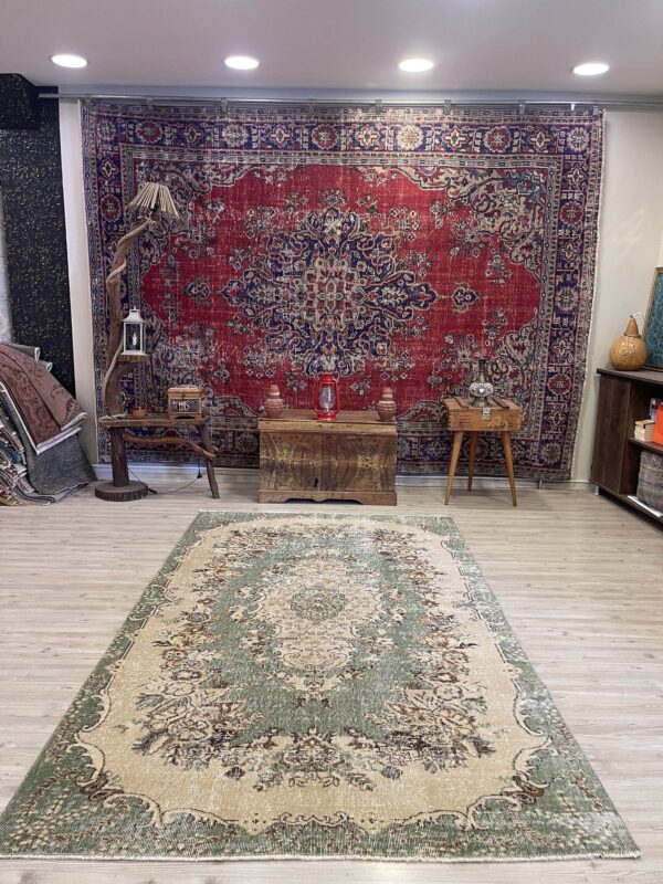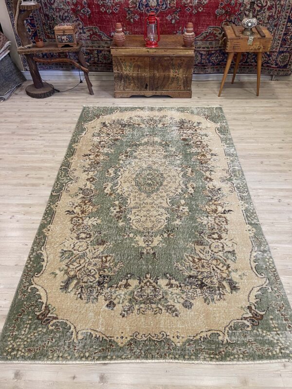 Anadolu’nun yüzyıllık el sanatları geleneğini yansıtan bu özel halı, 1980 öncesi tamamen el dokuması olarak hazırlanmıştır. Doğal yün ve pamuk ipliklerinden dokunan halı, geleneksel tekniklerle işlenmiş, traşlanıp temizlenerek modern vintage tarzına uygun hale getirilmiştir.