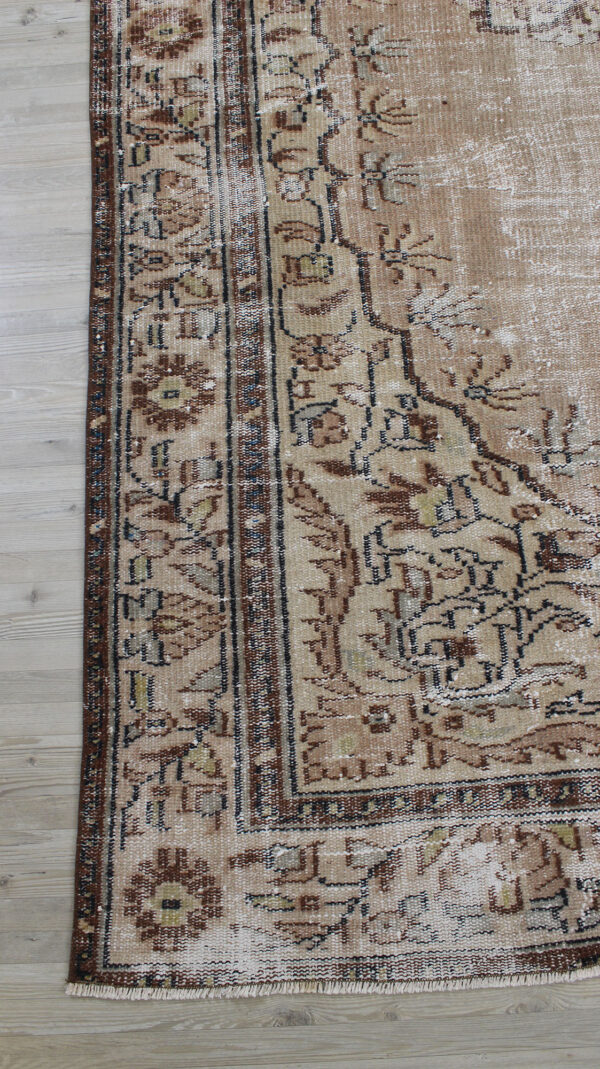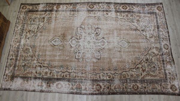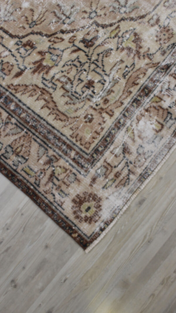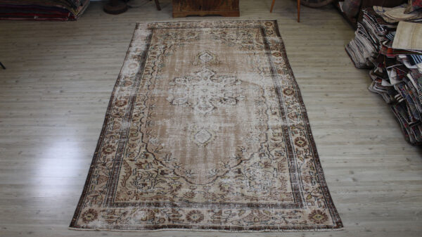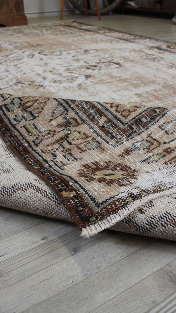 Anadolu’nun yüzyıllık el sanatları geleneğini yansıtan bu özel halı, 1980 öncesi tamamen el dokuması olarak hazırlanmıştır. Doğal yün ve pamuk ipliklerinden dokunan halı, geleneksel tekniklerle işlenmiş, traşlanıp temizlenerek modern vintage tarzına uygun hale getirilmiştir.