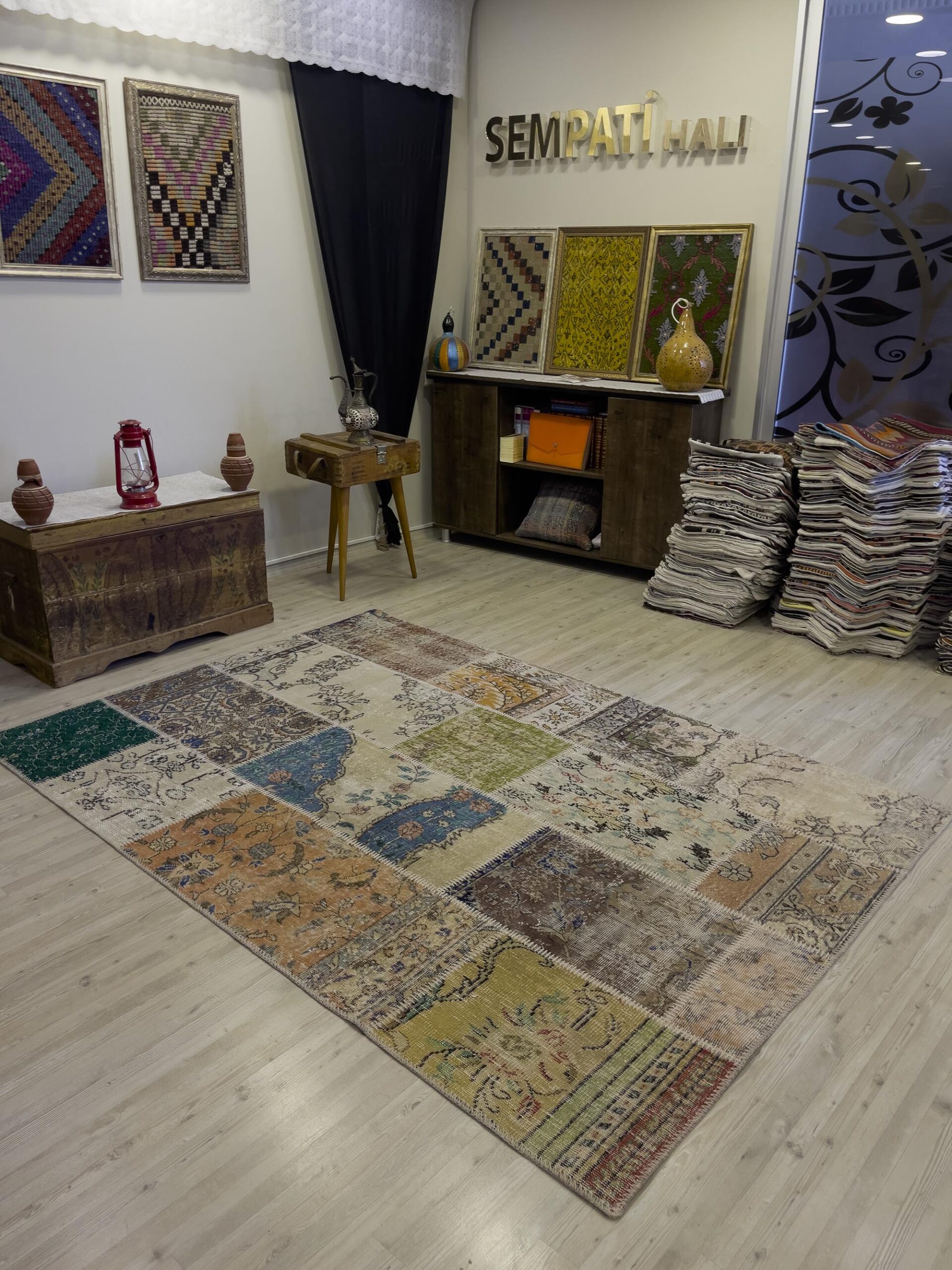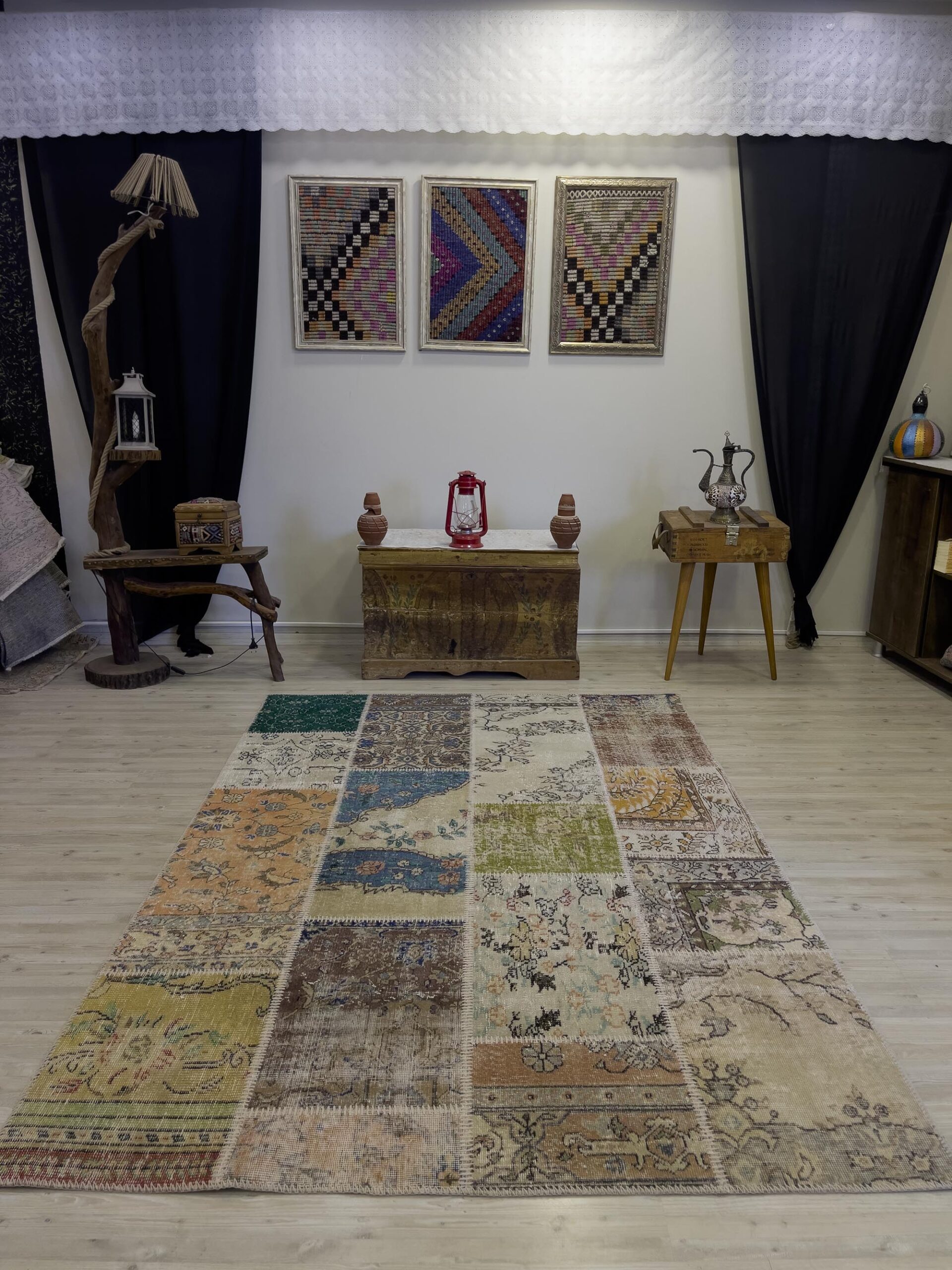 Patchwork halılar, el dokuma halıların bir araya getirilmesi ile oluşturulduğundan dolayı halıyı oluşturan parçaların desenlerinde ve renk tonlarında farklılık olabilir.