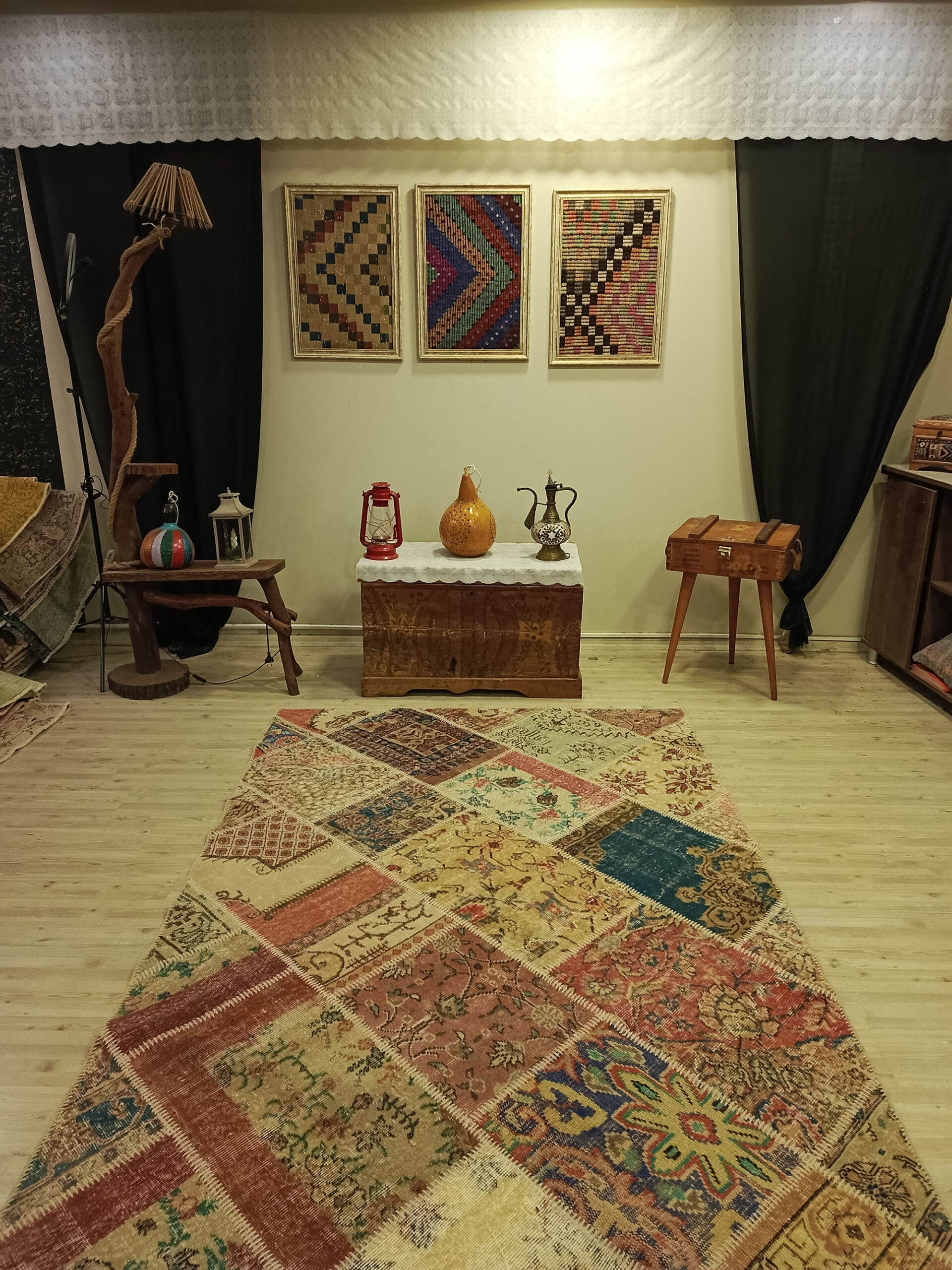 Anadolu kültüründen izler taşıyan bu benzersiz halı, evinize hem nostaljik bir hava katacak hem de sıcaklık ve özgünlük sunacaktır. Her ilmeğinde geçmişten gelen bir hikaye bulunan bu ürün, yaşam alanınıza sanatsal bir dokunuş getirir.