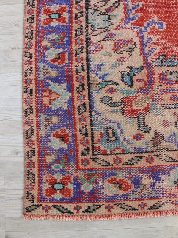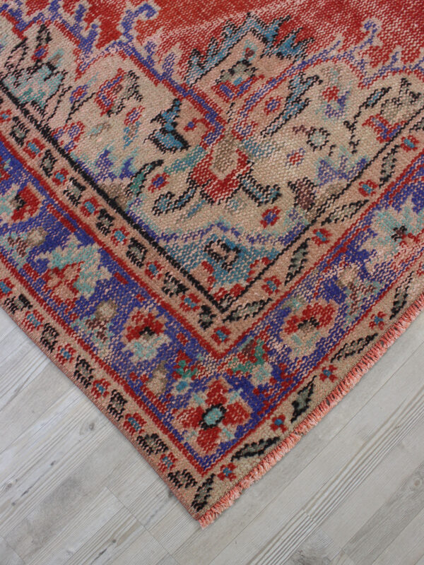 Anadolu’nun yüzyıllık el sanatları geleneğini yansıtan bu özel halı, 1980 öncesi tamamen el dokuması olarak hazırlanmıştır. Doğal yün ve pamuk ipliklerinden dokunan halı, geleneksel tekniklerle işlenmiş, traşlanıp temizlenerek modern vintage tarzına uygun hale getirilmiştir.
