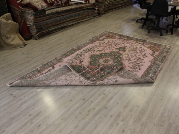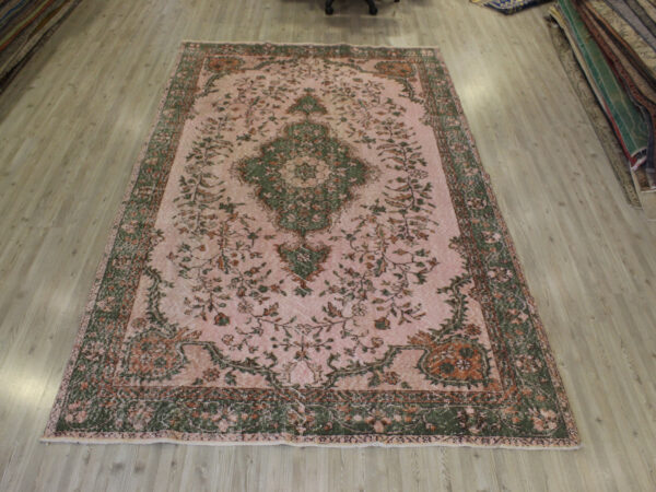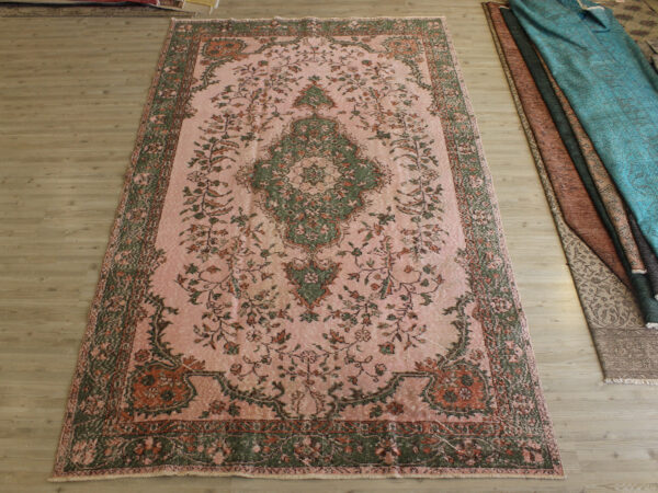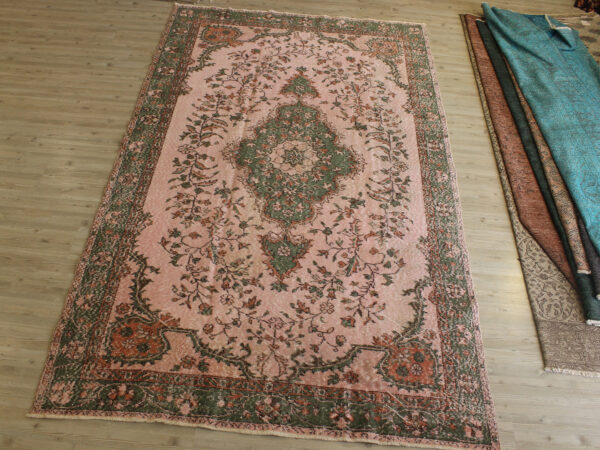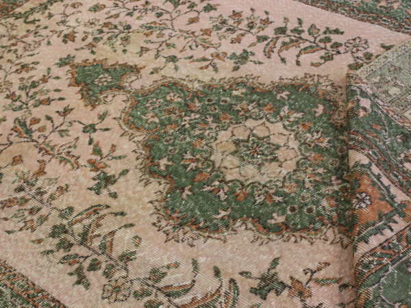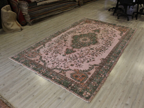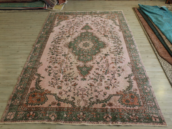 Anadolu’nun yüzyıllık el sanatları geleneğini yansıtan bu özel halı, 1980 öncesi tamamen el dokuması olarak hazırlanmıştır. Doğal yün ve pamuk ipliklerinden dokunan halı, geleneksel tekniklerle işlenmiş, traşlanıp temizlenerek modern vintage tarzına uygun hale getirilmiştir.