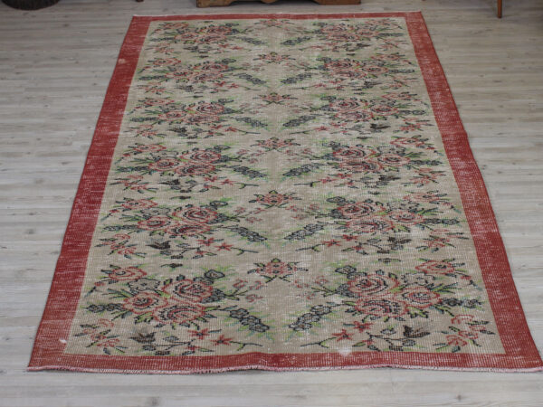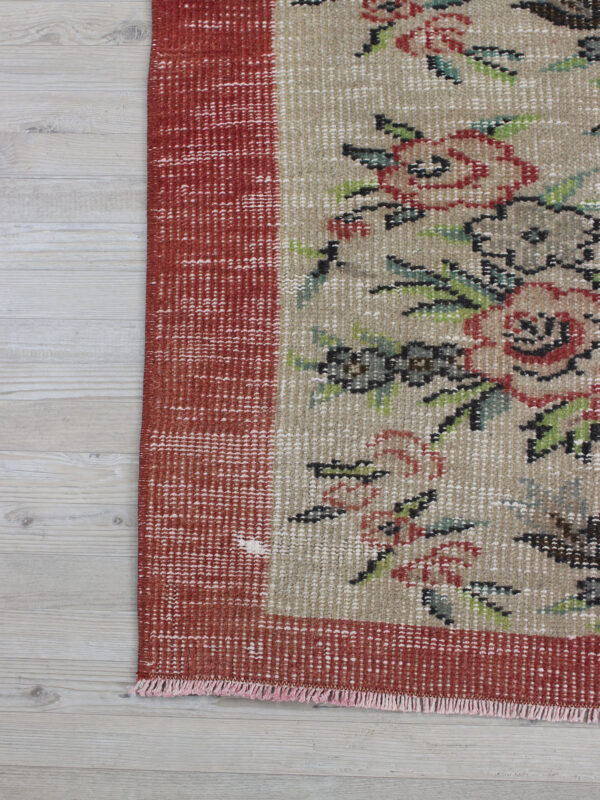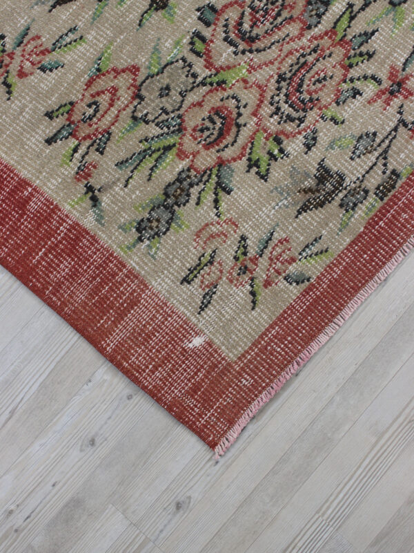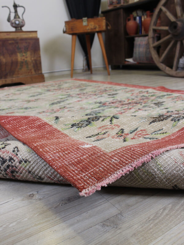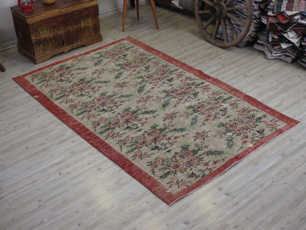 Anadolu’nun yüzyıllık el sanatları geleneğini yansıtan bu özel halı, 1980 öncesi tamamen el dokuması olarak hazırlanmıştır. Doğal yün ve pamuk ipliklerinden dokunan halı, geleneksel tekniklerle işlenmiş, traşlanıp temizlenerek modern vintage tarzına uygun hale getirilmiştir.