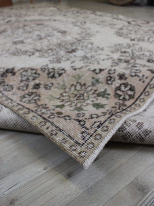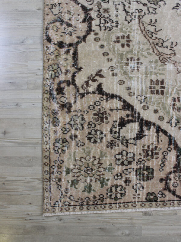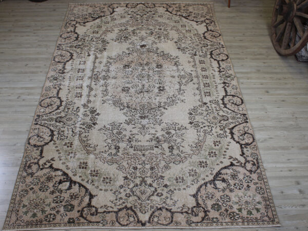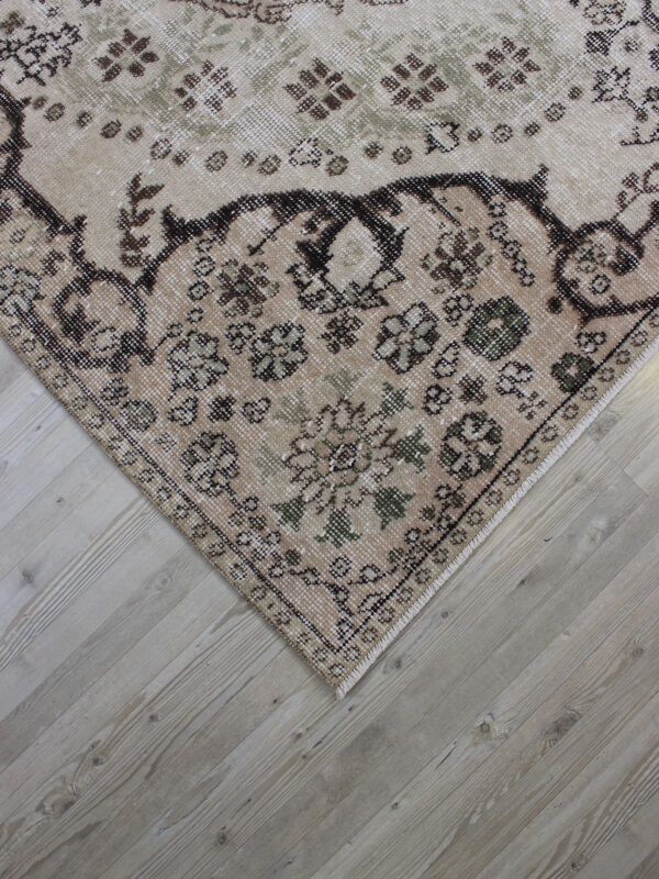 Anadolu’nun yüzyıllık el sanatları geleneğini yansıtan bu özel halı, 1980 öncesi tamamen el dokuması olarak hazırlanmıştır. Doğal yün ve pamuk ipliklerinden dokunan halı, geleneksel tekniklerle işlenmiş, traşlanıp temizlenerek modern vintage tarzına uygun hale getirilmiştir.