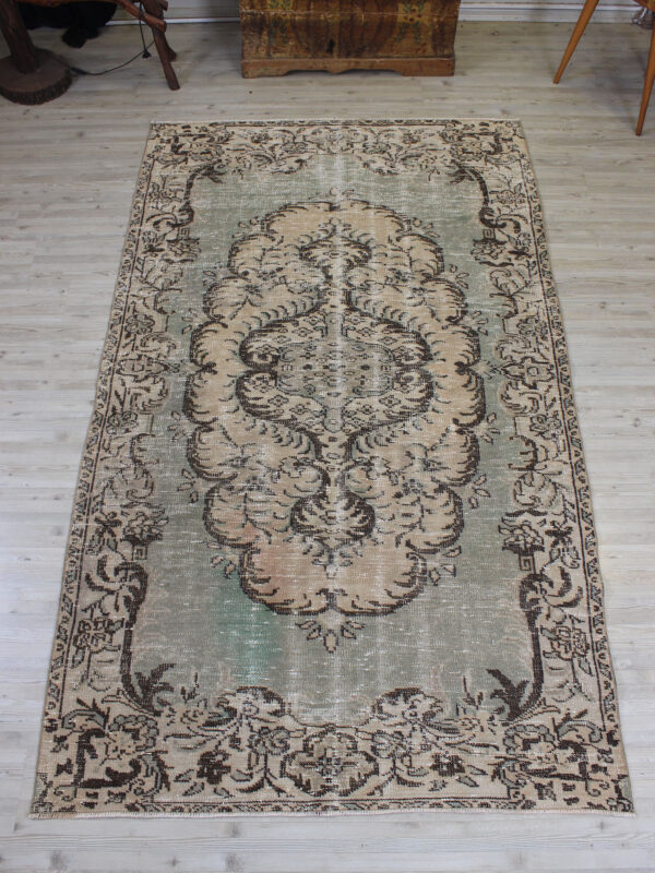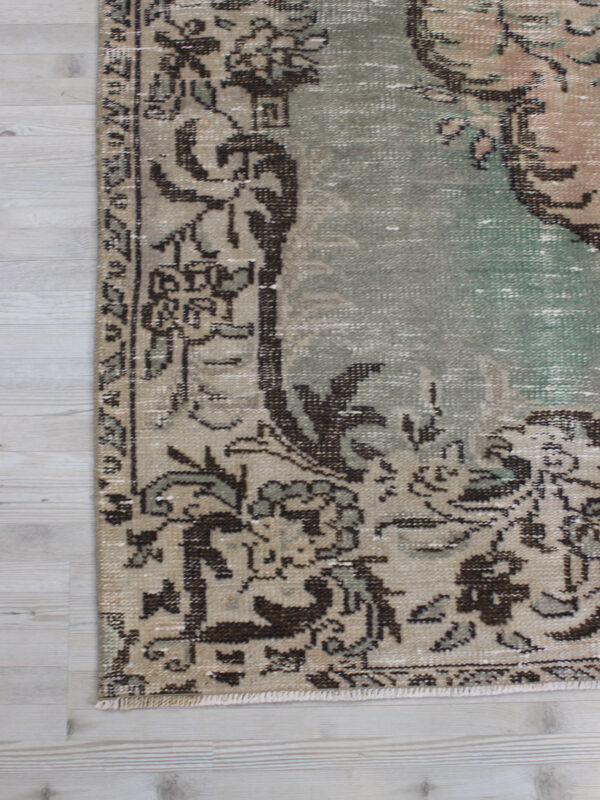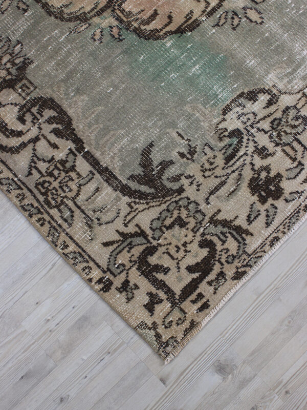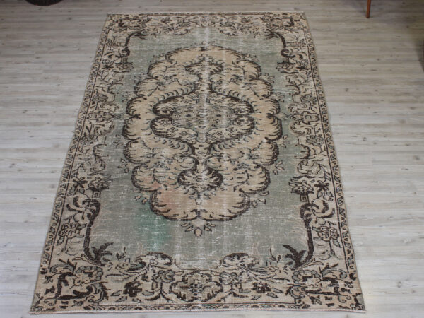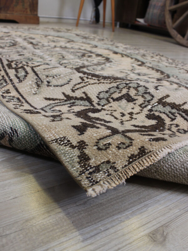 Anadolu’nun yüzyıllık el sanatları geleneğini yansıtan bu özel halı, 1980 öncesi tamamen el dokuması olarak hazırlanmıştır. Doğal yün ve pamuk ipliklerinden dokunan halı, geleneksel tekniklerle işlenmiş, traşlanıp temizlenerek modern vintage tarzına uygun hale getirilmiştir.