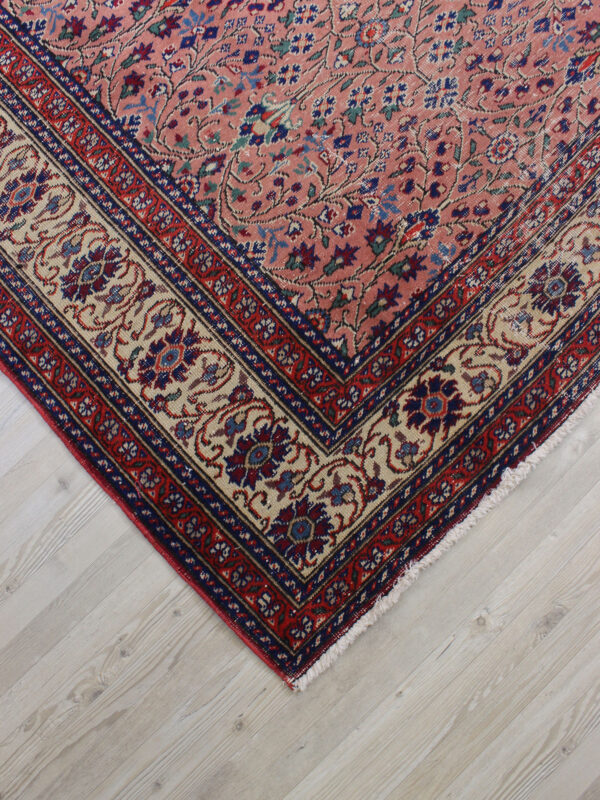 Anadolu’nun yüzyıllık el sanatları geleneğini yansıtan bu özel halı, 1980 öncesi tamamen el dokuması olarak hazırlanmıştır. Doğal yün ve pamuk ipliklerinden dokunan halı, geleneksel tekniklerle işlenmiş, traşlanıp temizlenerek modern vintage tarzına uygun hale getirilmiştir.